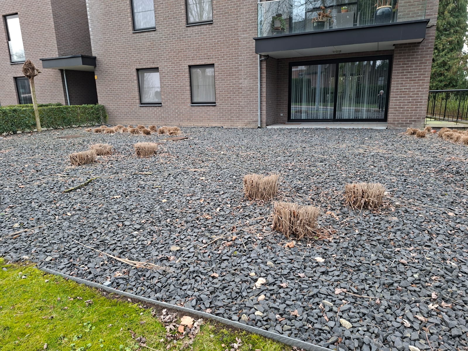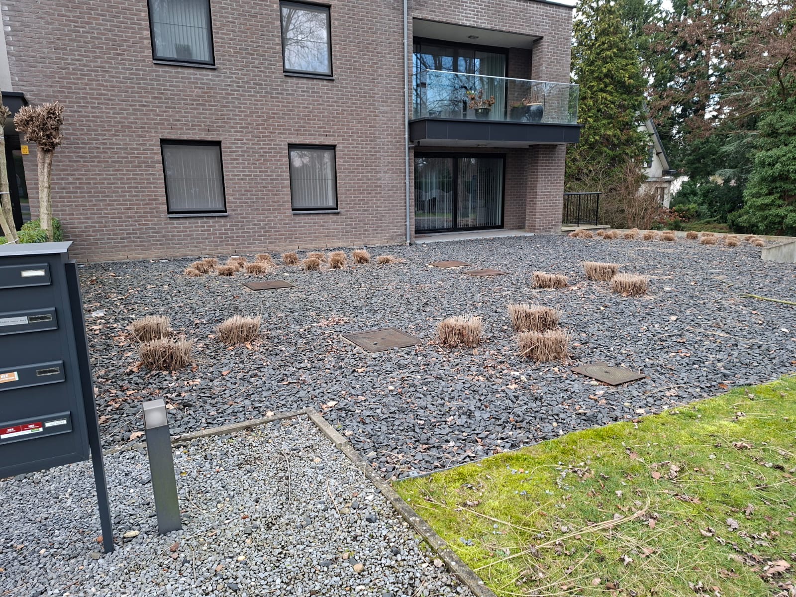 Werken - Hoogstraat 3, As: Deel van lava aan rechterzijde die meer vergroend zal worden: lava wegdoen + schors/gras + grassen